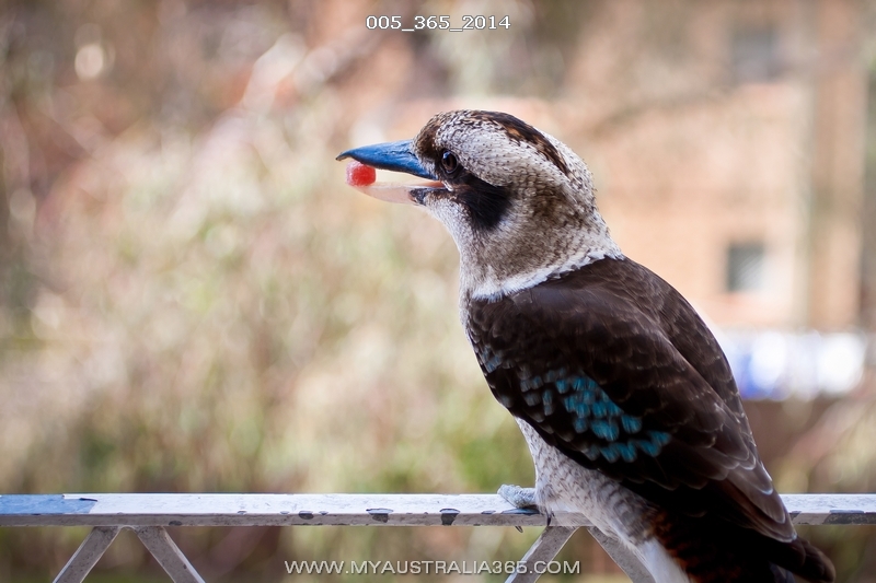 Сегодня я покажу вам кукабару. Вот она, сидит на нашем балконе. Об этих необычных птицах я слыхала еще до приезда в Австралию, а точнее об их необычном крике.
