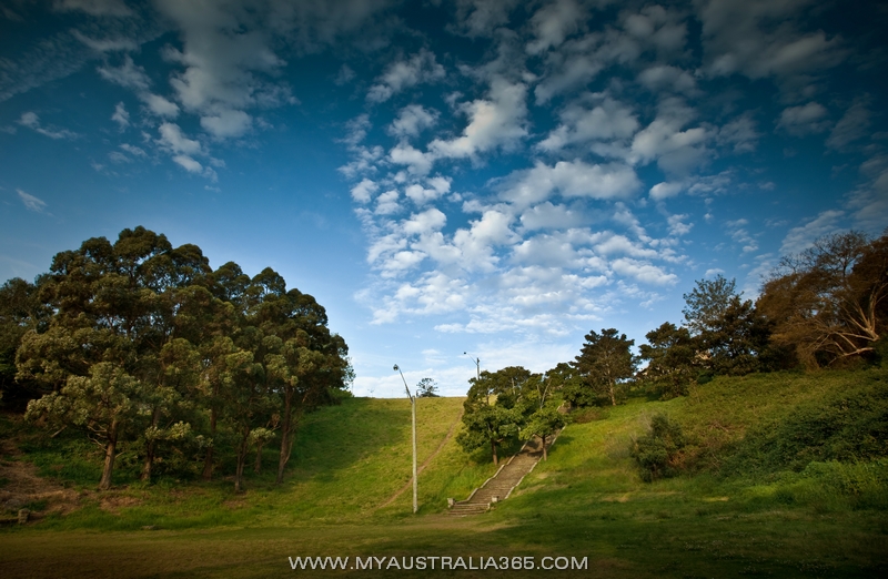 Тихий и уютный Купер Парк Cooper Park в Сиднее привлекателен своей особой атмосферой, как будто и не в сердце города находишься, а где-нибудь в лесу в районе Голубых Гор. Выходишь из чащобы и вдруг видишь такой вот вид и крутую-крутую лестницу. Ну просто мечта, а не лестница. Пару-тройку раз спуститься и подняться, и уже можно забыть о фитнес-тренировке на сегодня )))