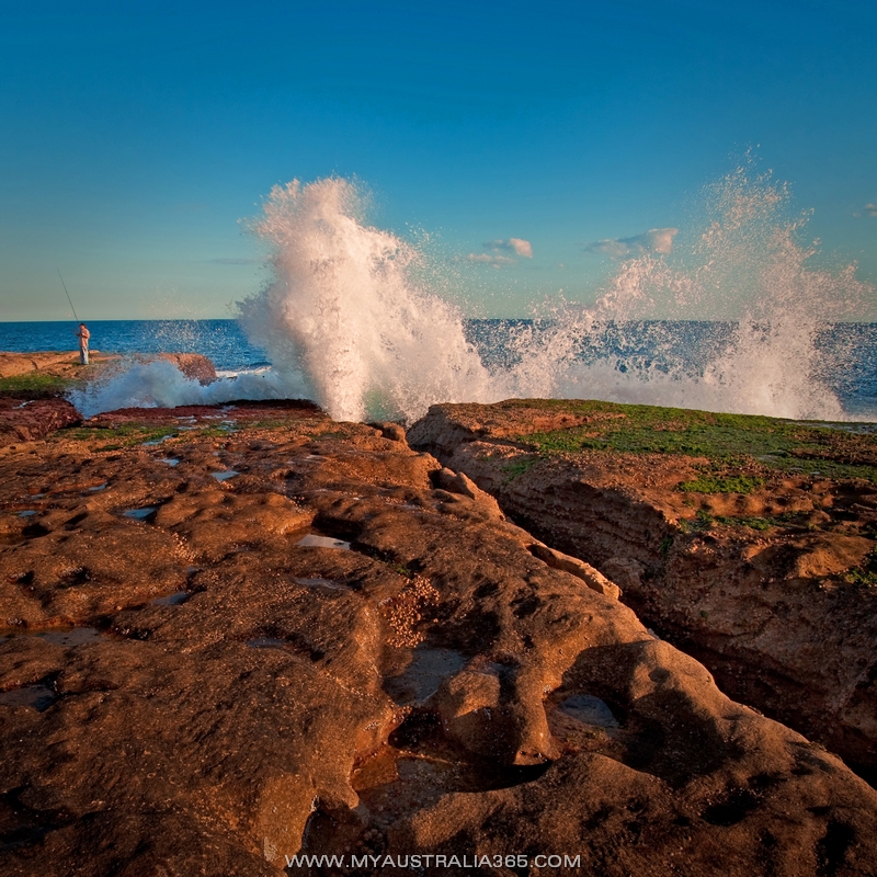 Гулять по скалистым берегам Северного Бондая – это просто какая-то мечта детства! Удивительно красивые текстуры поверхностей, природные каналы с водой, маленькие водоемчики с живностью, небольшие природные бассейны, где можно плескаться, нагромождение камней, по которым так здорово прыгать! Однажды во время такого путешествия мне удалось найти небольшую пещеру, случайно созданную из валунов стихией-матушкой. Но гулять там надо с большой осторожностью, так как в плохую погоду может накрыть волной и даже унести в океан. Неподалеку от того места, что изображено на фотографии, на каменистом плато лежит огромный кусок скалы. На нем можно заметить маленькую металлическую табличку с надписью:«This rock, weighing two hundred and thirty five tons, was washed up from the sea during a storm on 15 July, 1912» Впечатляет. Но и в спокойную погоду надо осторожно пересекать вот такие природные каналы, а то можно попасть под незапланированный душ ))