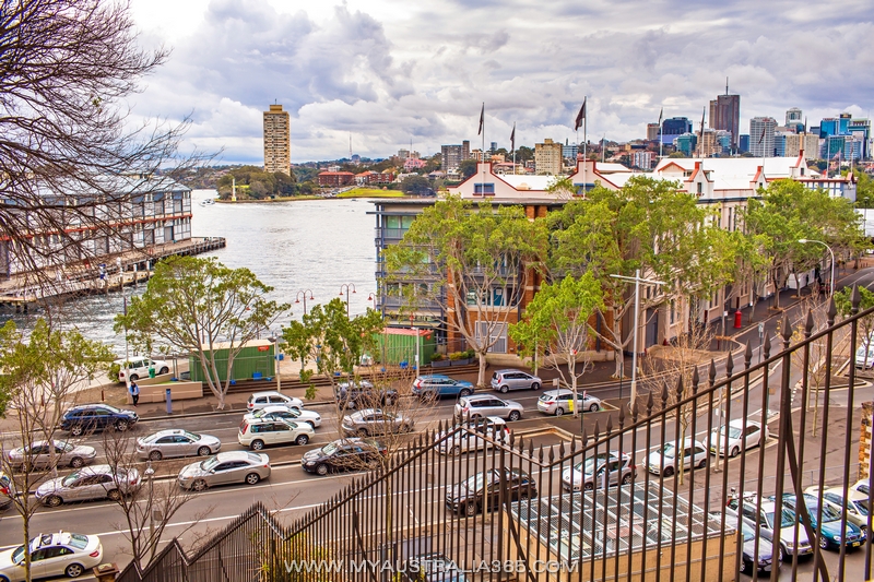 Это вид на район The Rocks с лестницы со своим собственным именем Hickson steps. Обожаю эти места!